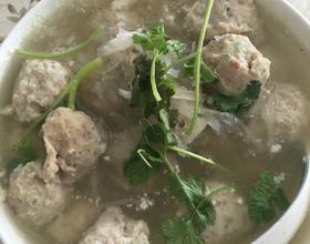 开水烧开后 转小火 开始制作肉丸 待肉丸飘上来盛出 另烧一锅水 调入鸡精 盐 放进萝卜丝 烧烤后 加入肉丸 待两三分钟 可以加点香油 根据个人的口感