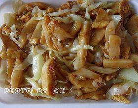 - 6. 锅里留余油,爆香蒜末后把切丝的包菜放入炒微软后也出锅乘出。