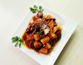 菠萝一定要在排骨烧亮油临出锅时,倒入翻炒几下立刻出锅盛装,这样菠萝的水分才不会流失太多影响口感。