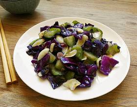 - 10. 倒入丝瓜、紫甘蓝翻炒