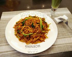 煮面条的时候,水中加点食盐和食用油,防止面条粘连。面条后期还要进行再炒,不要煮得过熟。盐的量要控制好,酱油和培根都很有盐分。炒锅先预热后放油,也是防止面条炒制过程中粘锅。