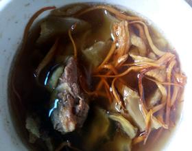 再把天麻,黄芪,白仲,虫草花加水放到排骨中。