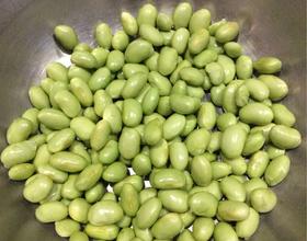 将油烧热,煸炒毛豆。(约2~3分钟)