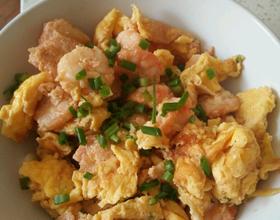 我选的是海虾,去筋,用料酒蛋清,姜丝腌制一个小时!煸炒后放入鸡蛋,加适量的水和盐大火5分钟即可!