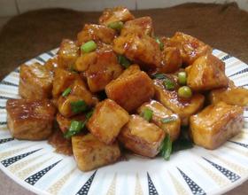 翻拌均匀,让每一块豆腐都沾上糖醋汁,撒上葱花拌匀即可出锅。