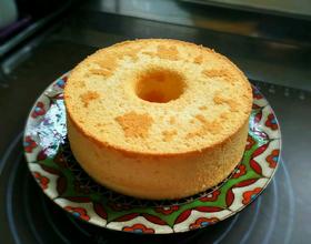 烤好的蛋糕可以用手按压式脱模,成功的戚风蛋糕没有那么娇气,按压过后会自动弹回来。