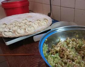 馅里放盐,一定要切记!准备开始包的时候,再拨出来一小部分调上盐搅拌均匀,准备包多少调多少,不要整盆都一次性调上,否则你包到最后会发现馅盆里全是肉和菜出的汁。