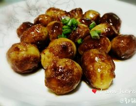 记得在煮熟剥掉壳的鹌鹑蛋上划上几刀。