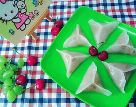 面团揪成均匀的剂子,擀成面皮,包入馅料,捏出三个角,如图。(边一定用力捏紧,以免蒸时开口。)上锅蒸5分钟,即可。