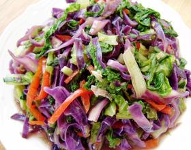 倒入甘蓝丝,生菜丝翻炒,加入精盐,酱油,蚝油。