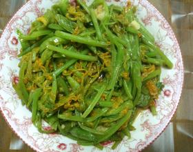 这道菜煸炒的过程中比较容易出水,所以在清洗完以后尽量把水控干,这样的话炒出来的味道会更脆一点
