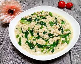 韭菜茎不好熟,先炒一下。豆腐不用切太碎。喜欢肉的朋友加点肉末也可以。
