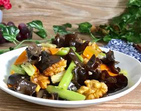 就着油锅下入西芹,红萝卜,蒜末炒香