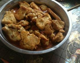 煮汁倒入炸好的豆腐里即可,煮汁时因孩子哭闹没能拍照,汁做法,锅中留一点油放大葱,水,一点点盐,火锅底料,鸡精,一顶五调料 ,玉米淀粉,蒜头,大葱。