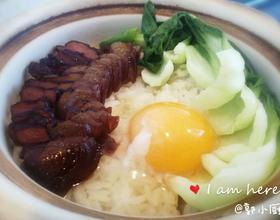 - 6. 铺上煮熟的腊肉。