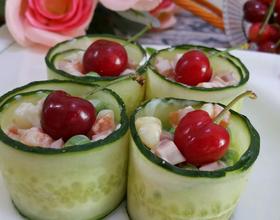 装入卷好的黄瓜碗里,后来觉得沙拉做少了,所以就用了四个