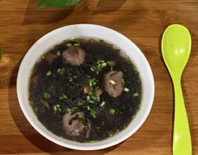 锅中倒入适量清水放入牛肉丸及姜片煮开后加入海米煮一会