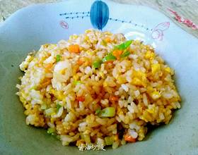 米饭选用隔夜剩米饭,这样的炒饭水分少,粒粒分明,好吃。