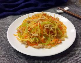 - 2. 猪肉洗净切丝后用盐、鸡精、生抽、料酒、淀粉、油抓匀腌制备用