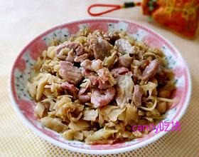 把甜梅菜浸泡半个小时,把梅菜干洗干净,并切成小丁状