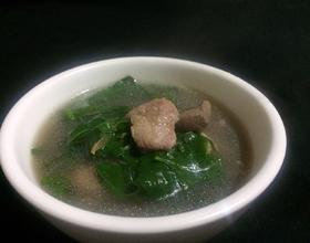 然后倒入枸杞叶滚2分钟,就可以下盐了