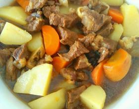(盐十≡香葱姜八角红干椒酱油蚝油)放入牛肉胡萝卜土豆,汤汁没过即可