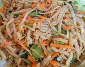 - 10. 锅里下油,将青菜和豆芽下锅里翻炒