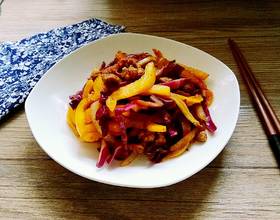 猪肉切丝,生抽煨制,热油下锅煸炒