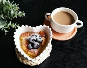 - 4. 吐司放到烤碗里整齐摆好,倒入蛋奶液,放入预热好的烤箱,130度烤12分钟左右。