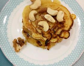可以用专门的那种松饼锅煎,第一次做的不太好~~~可以按照自己的口味加蜂蜜,坚果等等