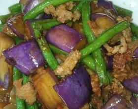 肥瘦肉分别剁成沫,茄子切块撒点盐拌匀十分钟,冲洗干净,用手把水分挤掉,豆角切段