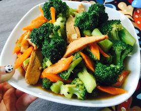锅内放少许油加热后,放入鸡胸肉和胡萝卜翻炒几下后加入海鲜酱油和十三香
