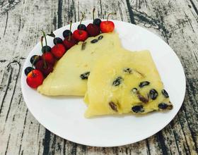 1、牛奶的添加,要慢慢添加。不要整盒全倒,按面粉的量来添加。2、搅拌好的糊糊,不要太稠,可以稀点。稀点糊,饼可以摊的更薄更软绵。3、小窍门:搅拌好的糊糊,加进一汤勺纯净水,再搅拌均匀,这样煎出来的饼口感更松软绵。4、葡萄干也可以用黑白芝麻代替,口感也很美味。5、装饰的水果可以随自己喜欢搭配。 这是一款简单快捷,美味又营养的饼,很适合早餐,点心。友友们做起吧。