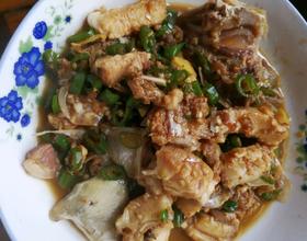 放入辣椒,姜片,生抽,翻炒至辣椒熟