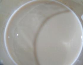 五分钟后,再放到装有脱脂牛奶的玻璃杯中。