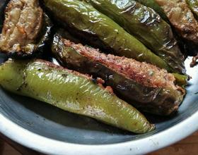 锅里放油把辣椒放进去用小火煎至辣椒外皮有点皱带黄就可以了,然后把火开到中火。把大蒜放进去炒香。放点生抽和盐,然后倒半碗水中小火炖一会,辣椒熟了就可以开大火收汁装盘了