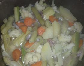 40分钟后小瓜胡萝卜洋芋下锅和四季豆煮着