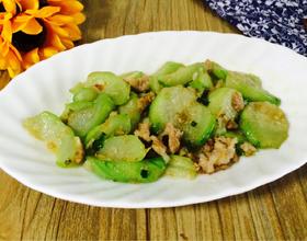 一道适合10~12个月宝宝食用的肉末炒丝瓜就做好了