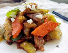 断生后放入胡萝卜和尖椒 继续炒