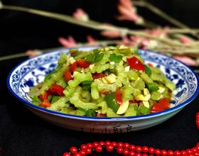1、切片时稍厚一些、以免焯水一下焯过了。2、焯水时放盐和油是为了护色。3、焯水后迅速投凉苦瓜更绿,且不会被余热烘软。4、为了突出苦瓜本身的味道所有本菜谱并无太多调料也没放鸡精、喜欢的朋友可以尝试,若偏爱某些调料请自行添加。
