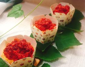 等纸杯蛋糕烤上了再做沙冰,免得果酱沙冰化水