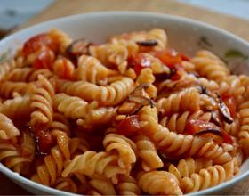 最后!加入番茄酱!!和螺旋丝意大利面一起翻炒!!