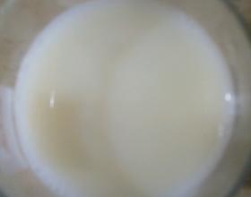 再把熟黄豆放到一个打磨豆浆的机子里榨成豆浆。