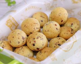 蔓越莓干要切碎,才容易混入面团,否则不易成团。搓圆球状时,不要用过用力,以免蔓越莓干碎掉出来,不易成型。冷藏是为了更好揉搓不粘手,做完大家可以试试,如果面团不粘手也可以直接省略冷藏步骤直接操作。