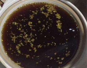 把材料用纱布包裹住放入锅内煮,大火煮开转小火煮半小时,加入老冰糖和桂花即可