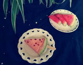 - 3. 每块瓜皮中间开一个口子,能插进冰棒棍的。