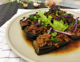 - 13. 将热腾腾的芡汁淋在茄块上.撒上葱花和芹菜花装饰.便可上桌了