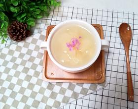 - 12. 撒上洗干净的紫薇花,让梨子水果羹更加出众,刺激宝宝食欲,宝宝都是颜值控,做的美美哒,才能刺激到宝宝