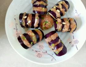 将肉馅分别塞入茄子缝,锅中隔水蒸20分钟左右