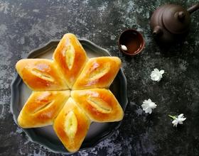 把面团擀成饼状,填入馅料,然后包起来,收口向下放入六角形模具中